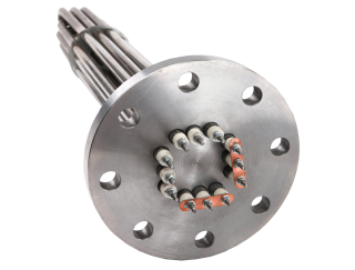 Нагреватели изготовлены из трубчатых нагревательных элементов, которые содержат опорный провод, а также из каркаса, содержащего блок однофазного 230V или трехфазного 400V тока. Фланцы изготавливаются из различных материалов: углеродистая сталь, нержавеющая сталь, латунь и т.д.