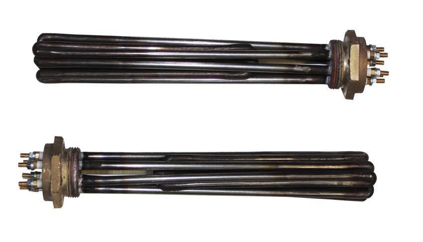 Масляные трубчатые электронагреватели предназначены для нагрева жиров, масла, битума и других жировых соединений. Нагрев пищевых и технических масел возможен в различных емкостях: в ваннах, цистернах, фритюрницах, масляных радиаторах и тому подобное. Нагреватели для масла по своим свойствам несколько схожи с водяными , но, при схожих размерах, они обладают меньшей мощностью. Так как на оболочке ТЭНа в масле температура не может превышать 250°С, так как при больших температурах, масло начнет гореть, а это плохо сказывается на качестве масла и на срок службы ТЭНа. Соответственно, чтобы достичь заданного значения температуры – следует уменьшить удельную мощность ТЭН до 3 вт/см2.